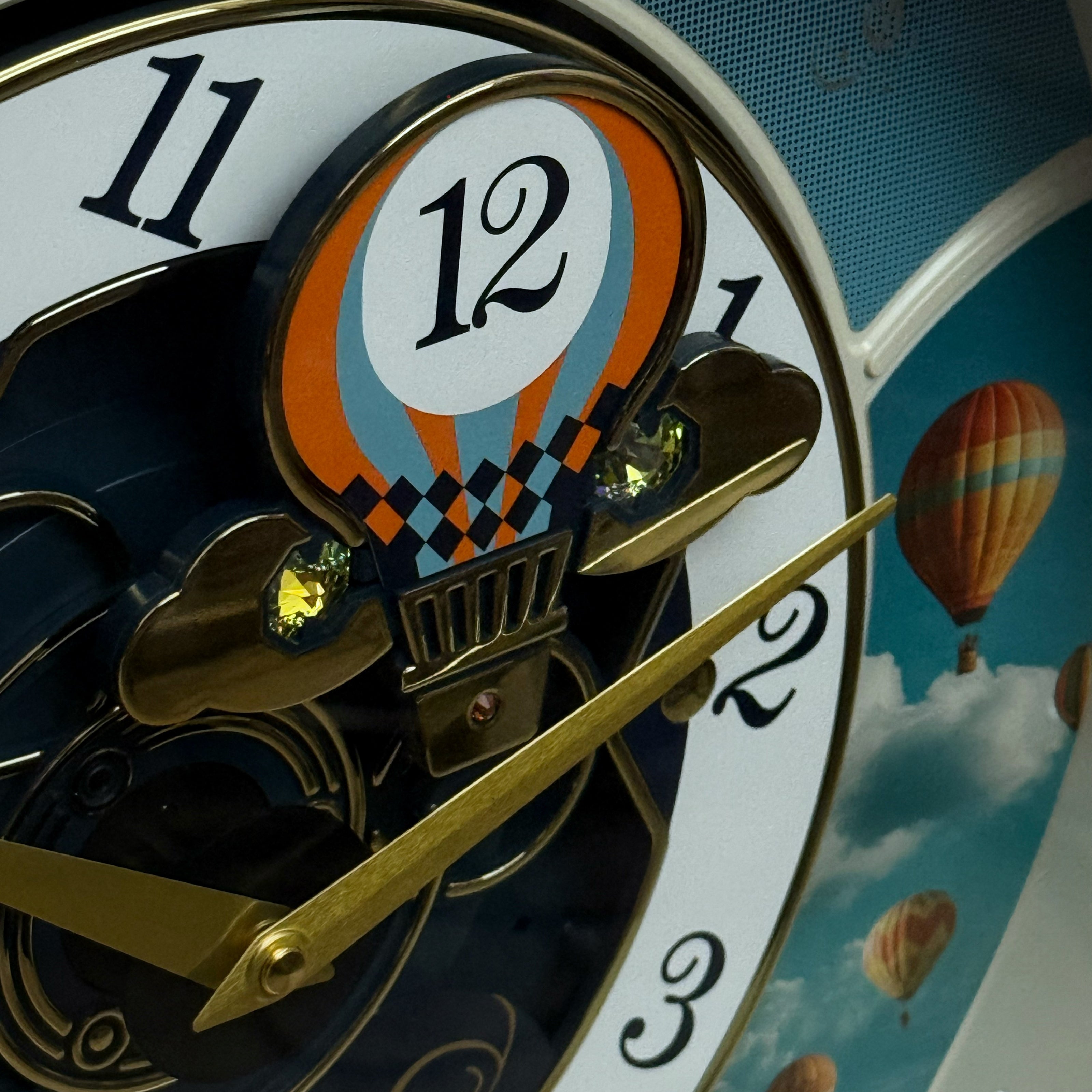 Product pageLet this ever-so-vibrant Seiko clock take you to a dreamland in the sky as its crystal-adorned hot air balloon moves as the dial rotates along to the tune of 40 total melodies.