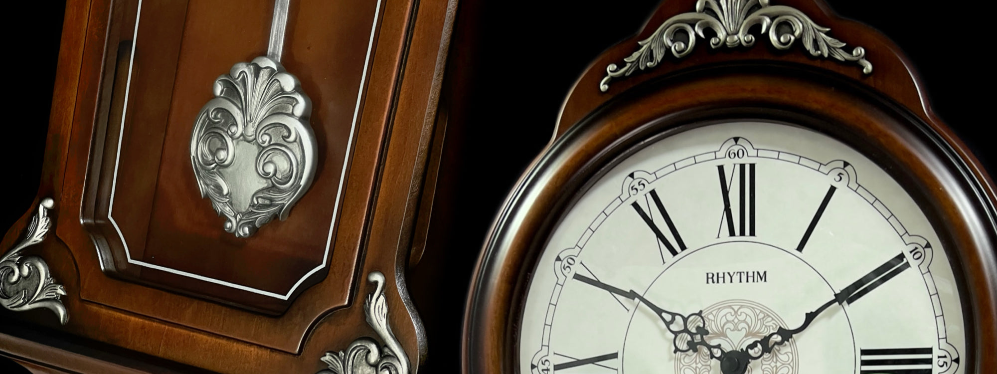 Rhythm “WSM Tiara II” Traditional Wooden Musical & Chiming Pendulum Wall Clock with Intricate Carved Frame - CMJ539UR06