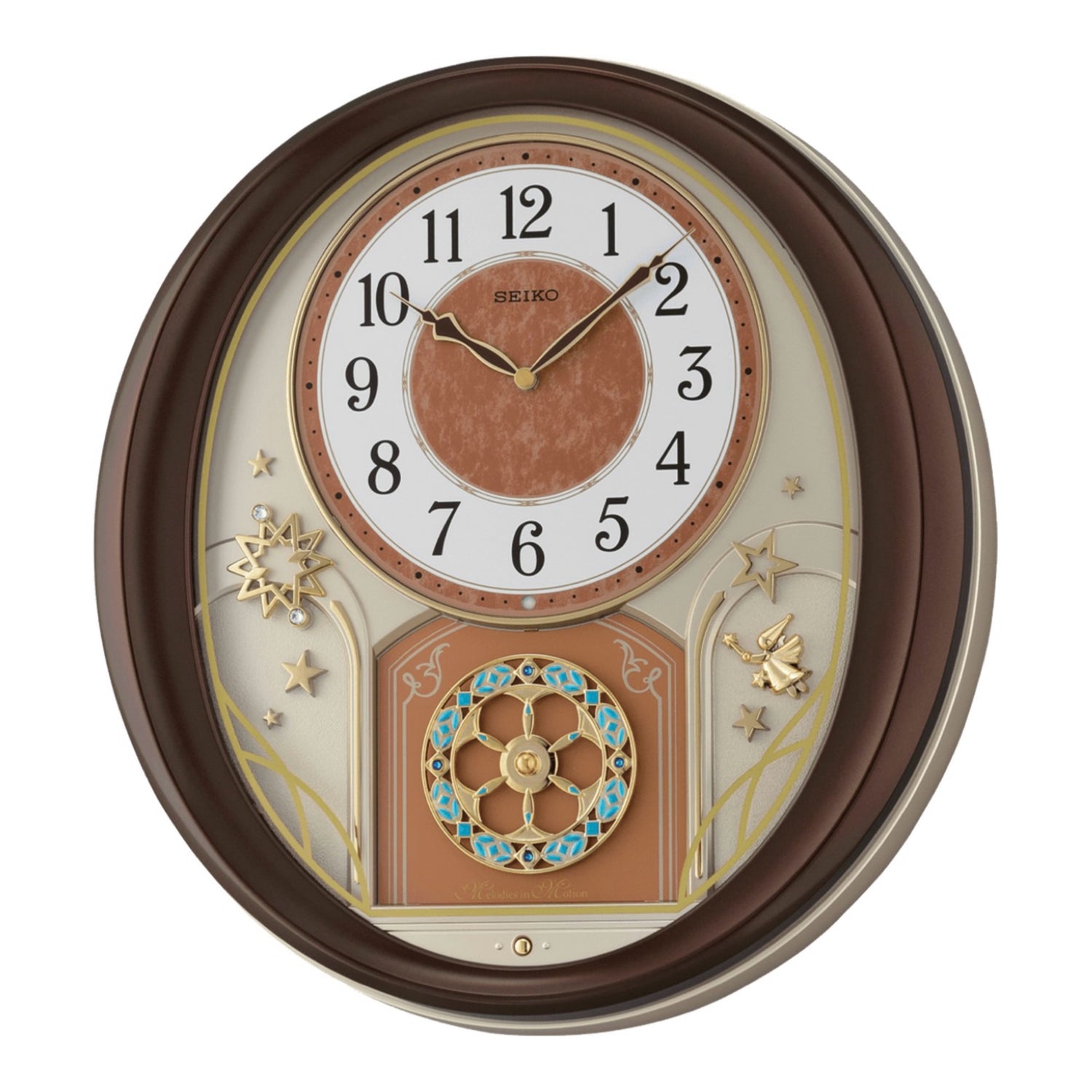Seiko QXM613BRH “Hazel Trumpeting Angels” Melodies in Motion Jaw-Dropping Dial Musical Moving Wall Clock with 13 Songs