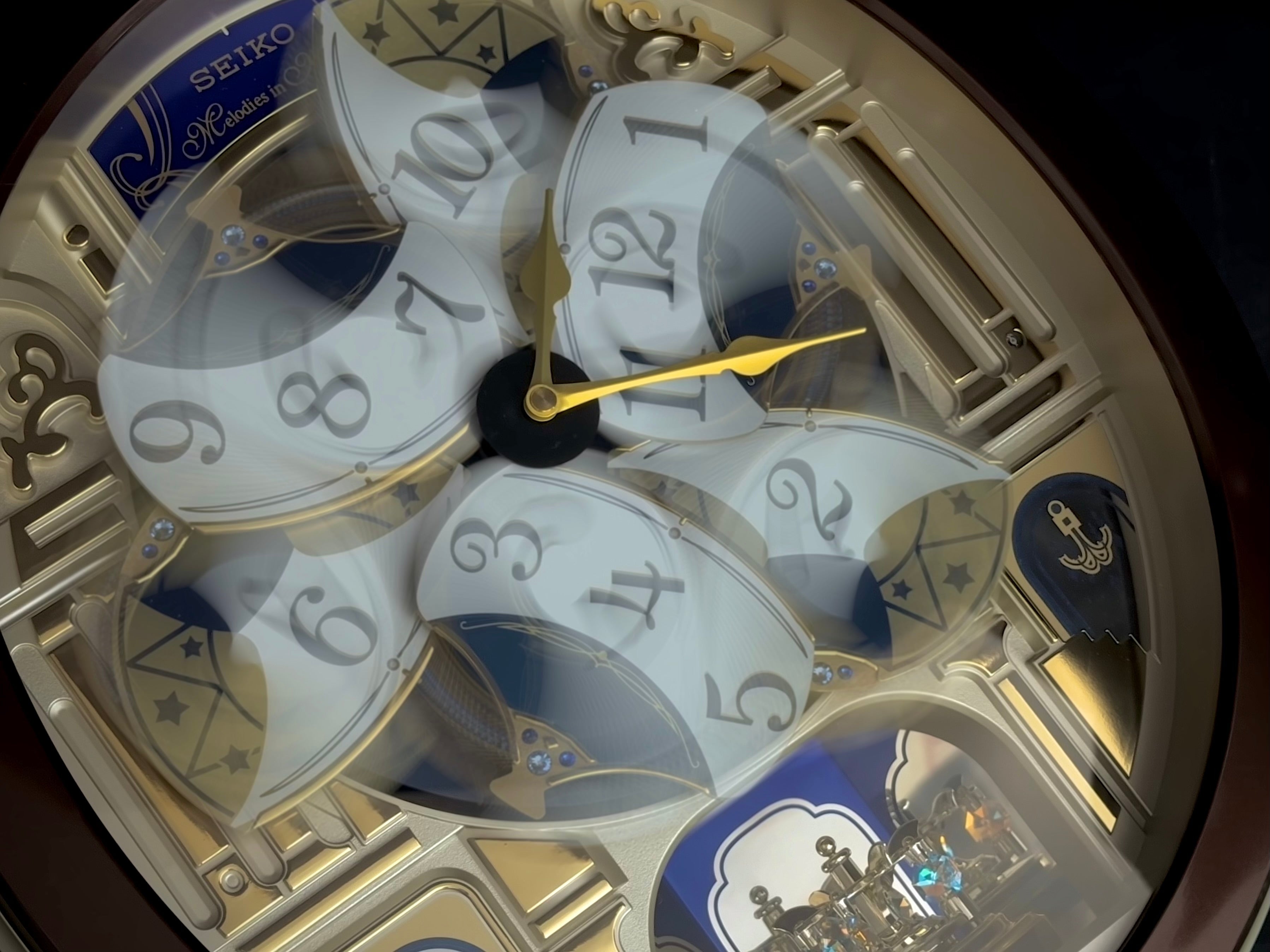 NEW! | Seiko QXM616SRH “Blue Skies” Melodies in Motion Dancing Dial Musical Wall Clock with 40 Songs