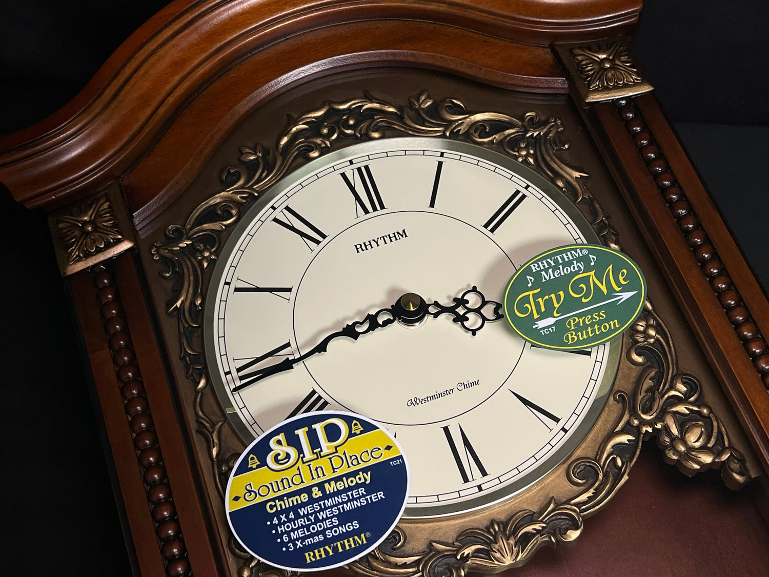 Introducing the bold stylings of Rhythm's "WSM Elyria" wooden wall clock, equipped with the world-renowned "Westminster & Strike or Melodies" movement. It allows you to choose between—you guessed it—Westminster chime or 9 total melodies.