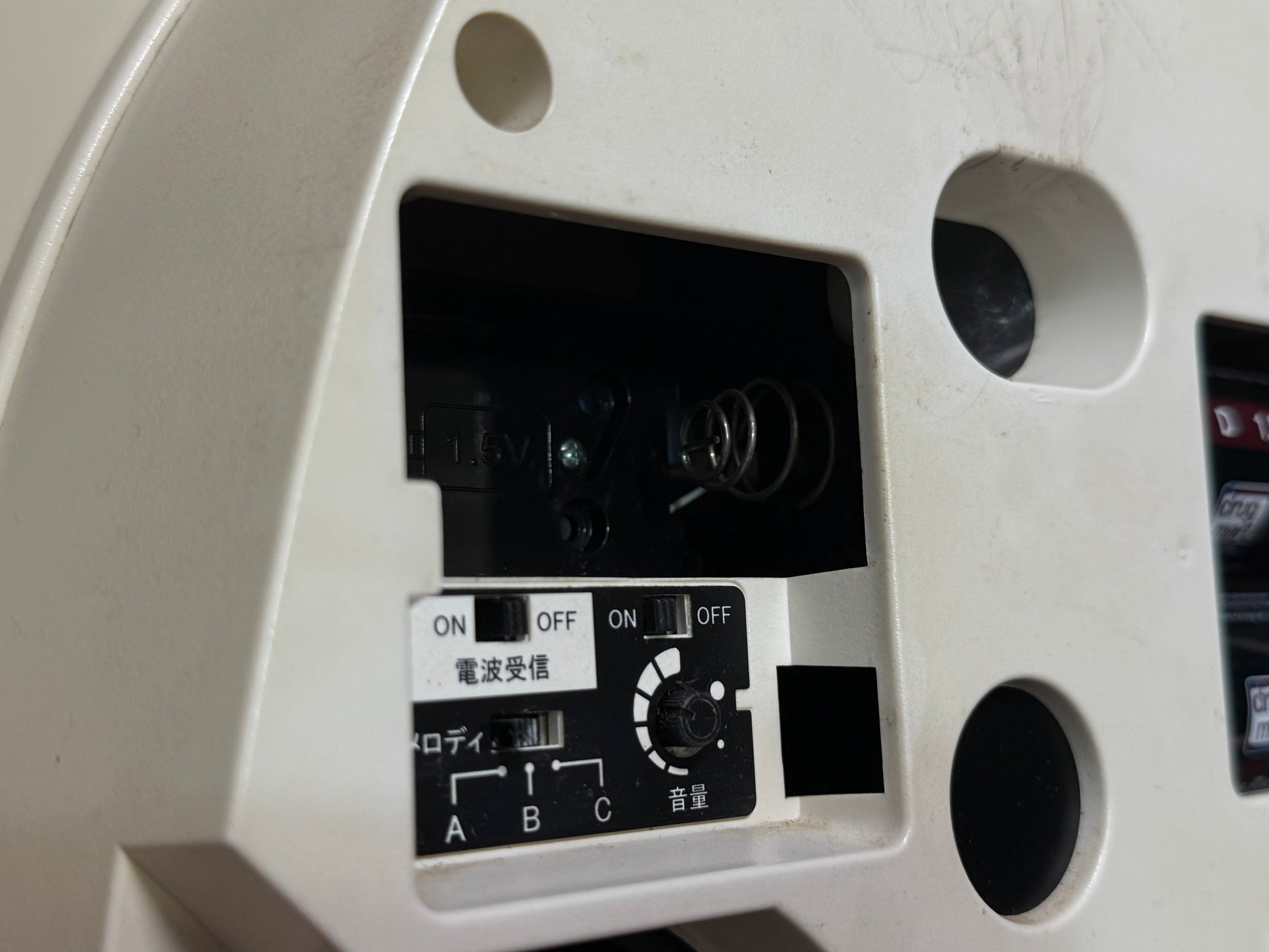 - On/off switch to turn hourly music on or off