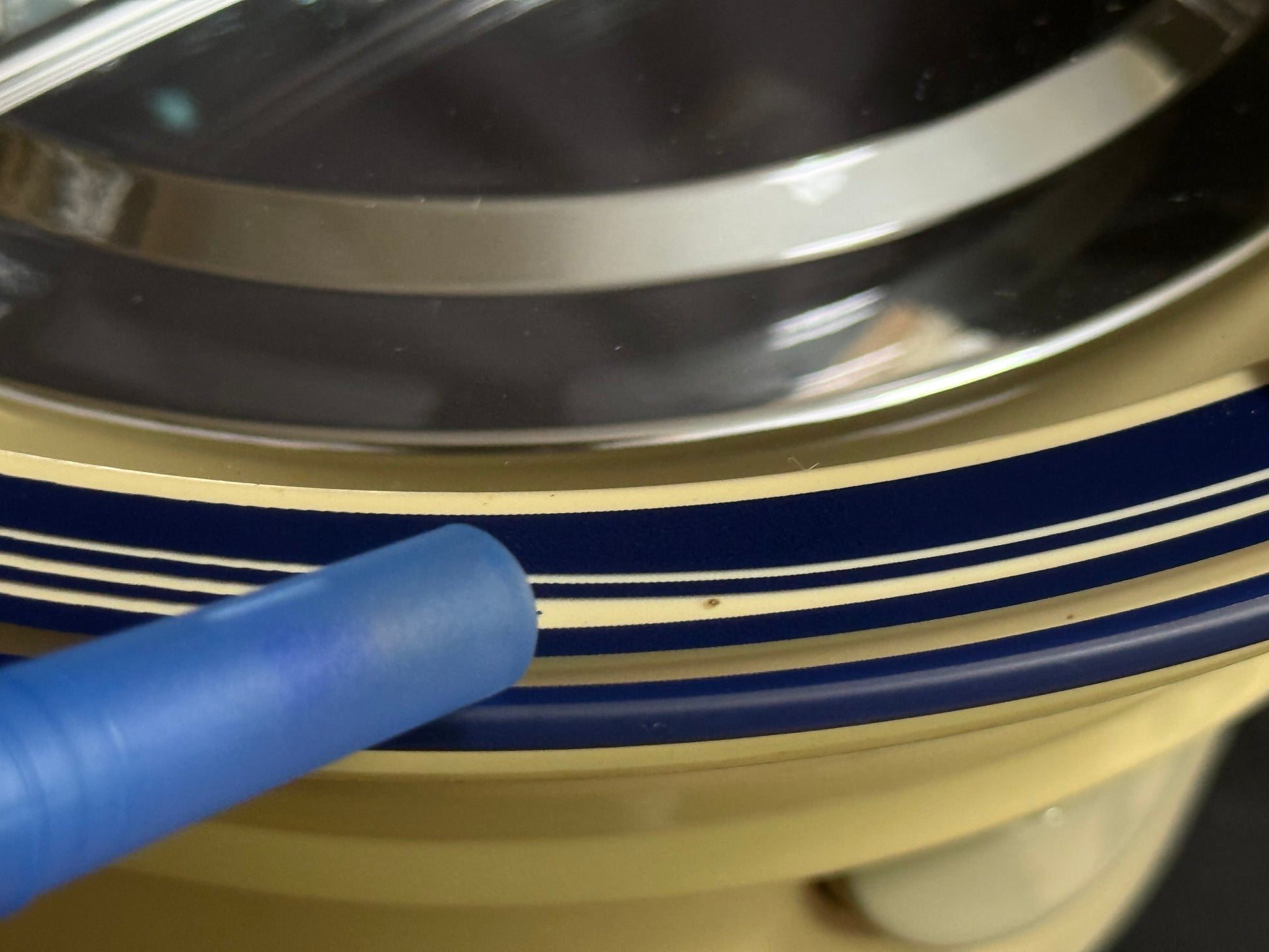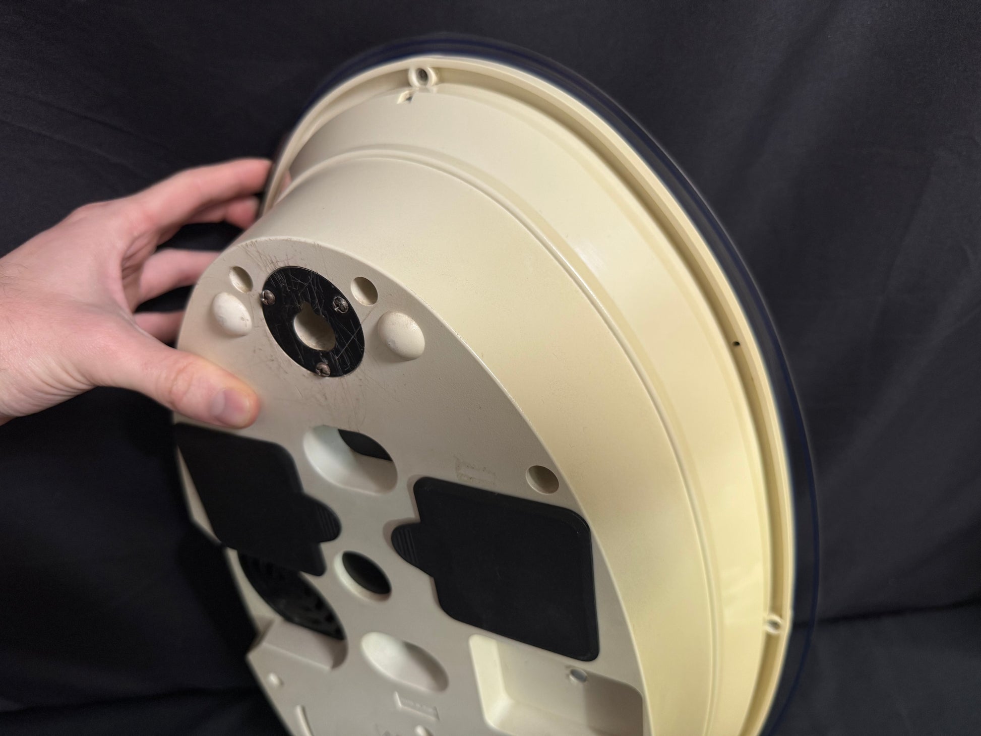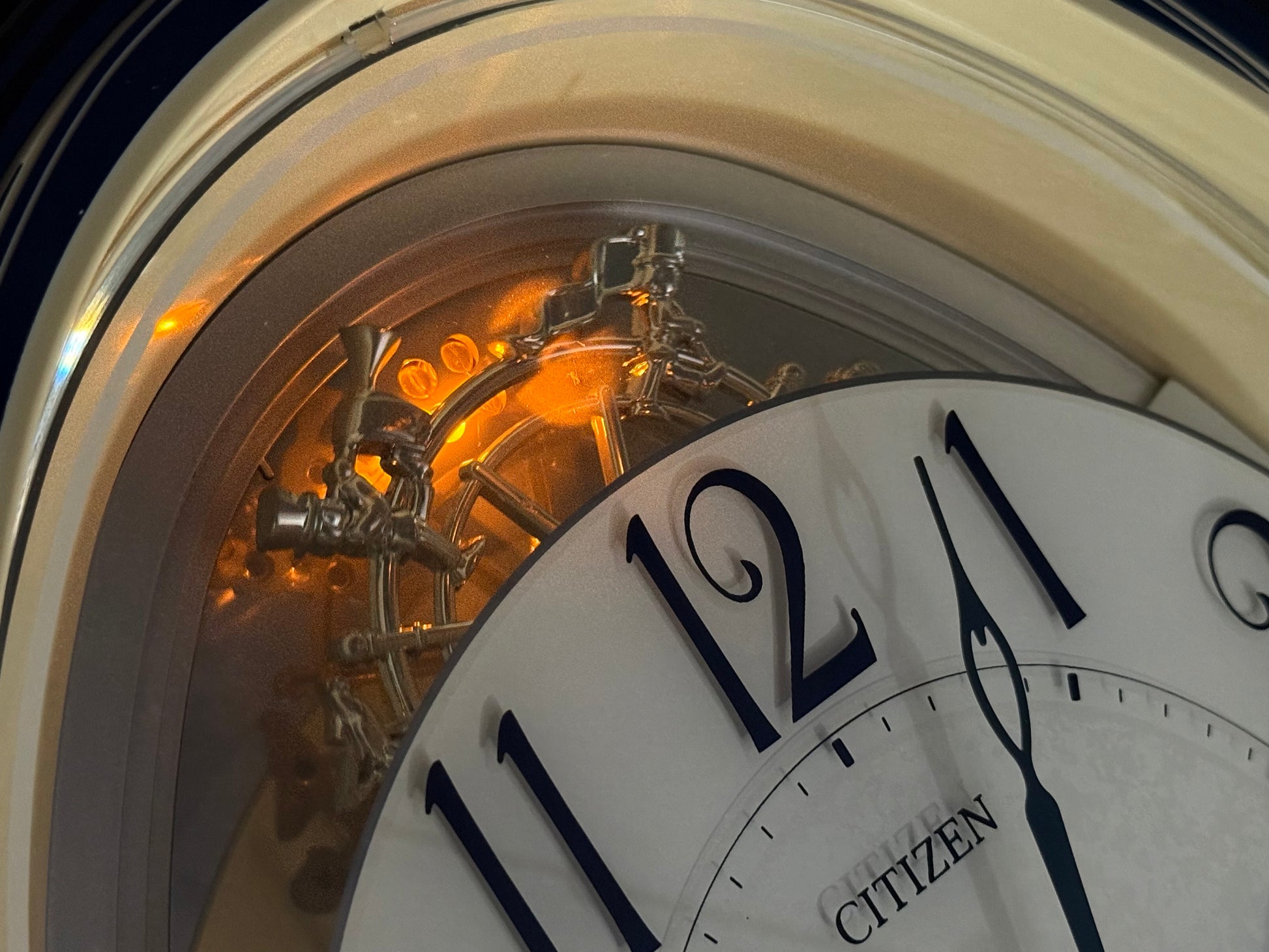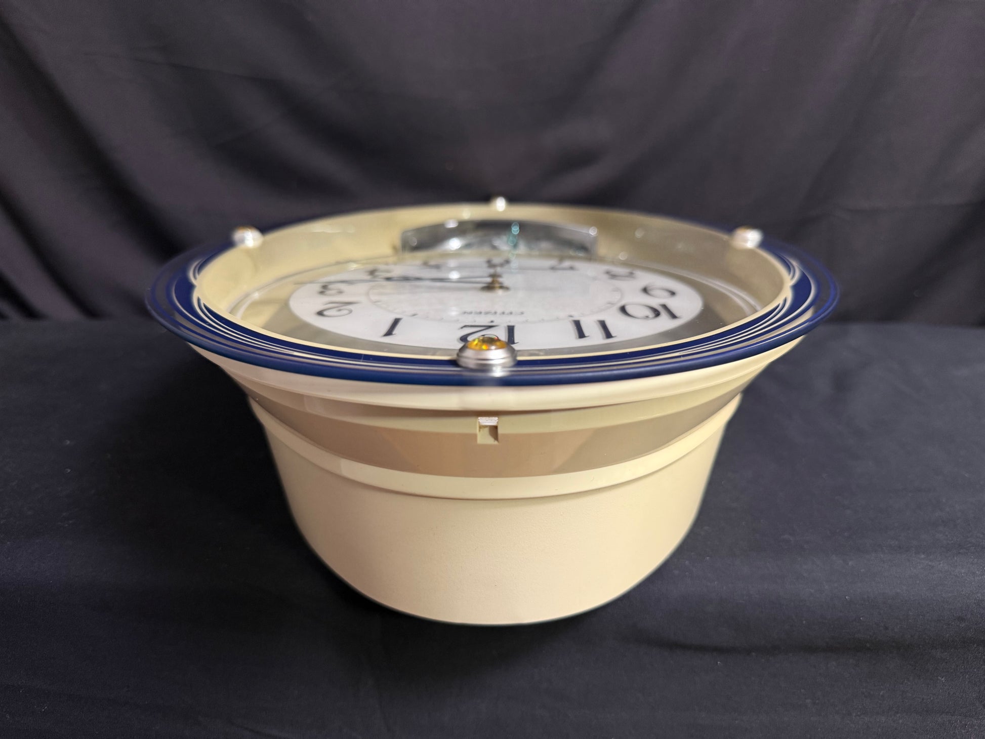 Notes: This is such a stunning piece, and it's nearly impossible to find here in the USA. There are a few small marks on the blue lineage underneath the dial, as pointed out in the photos. The left side of the clock's beige case is slightly faded from hanging in direct sunlight, so it is a bit darker than the right side. It isn't super noticeable once the clock is hung on the wall, but please look at the photos to compare the difference. Aside from that, this clock is in great used condition and still works like a charm. Watch the video for a demonstration!