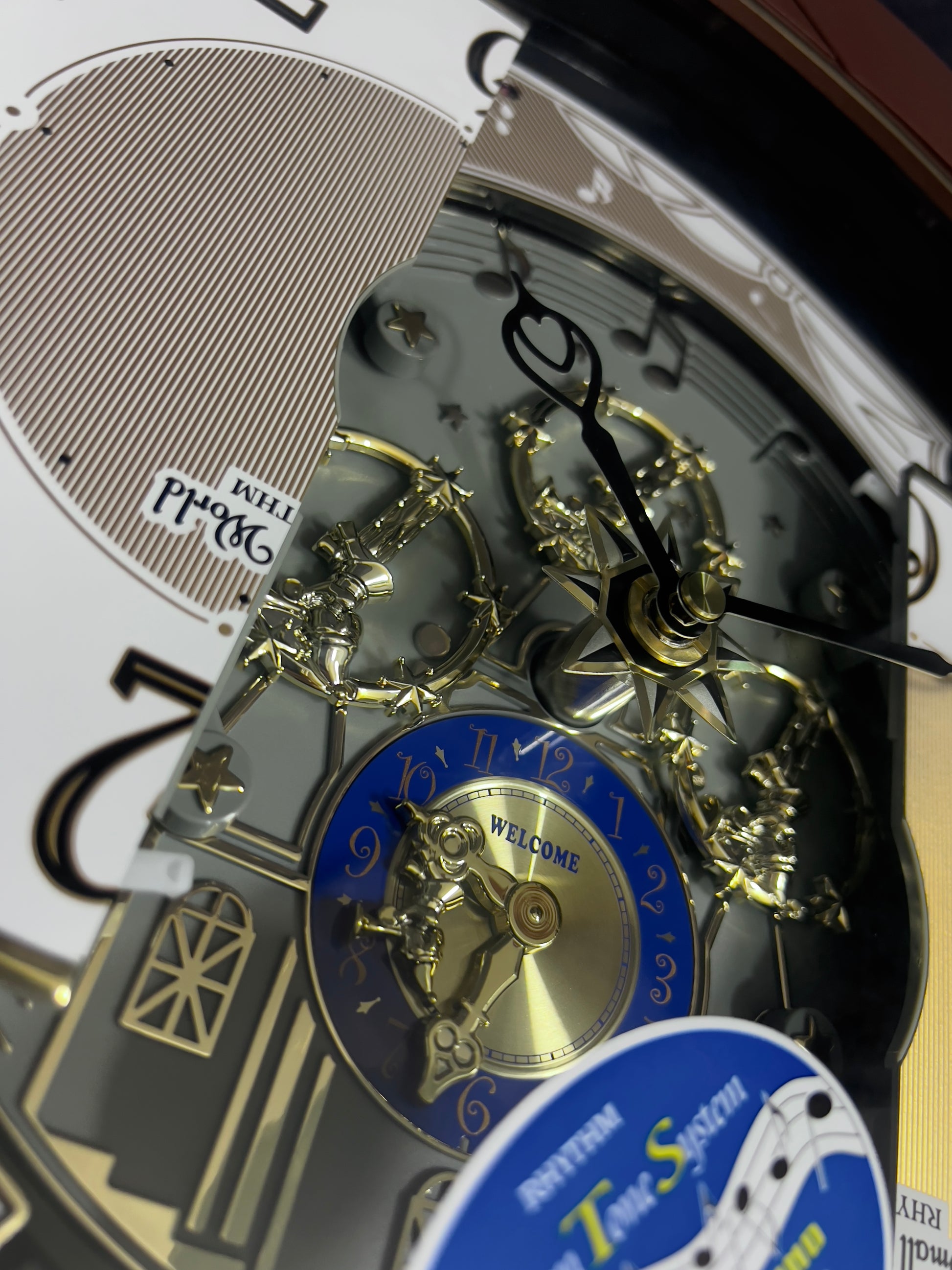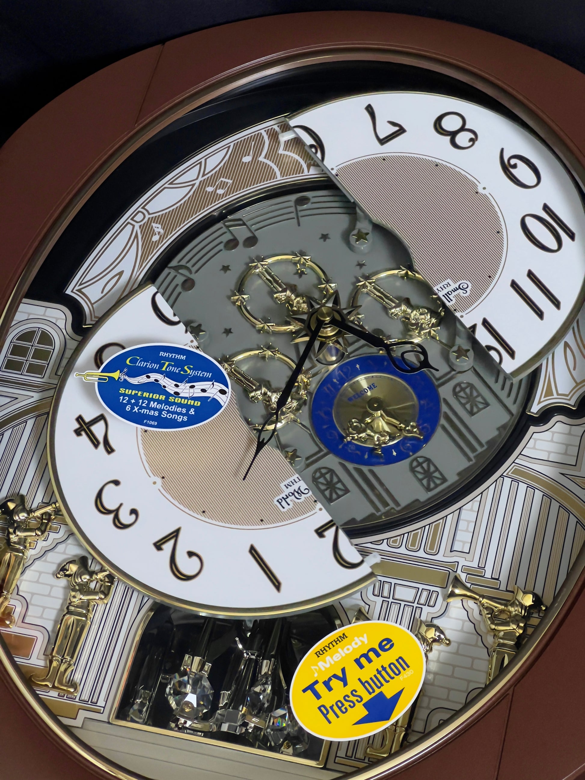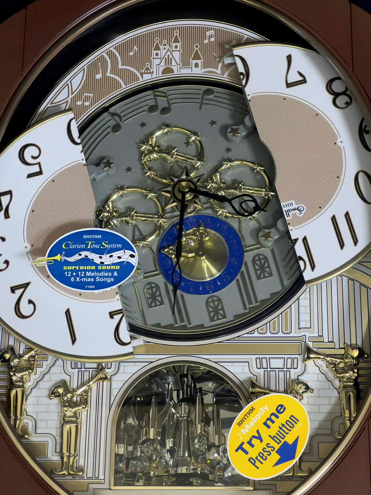 This clock is also available with a nighttime theme and Earth dial with a different melody list.