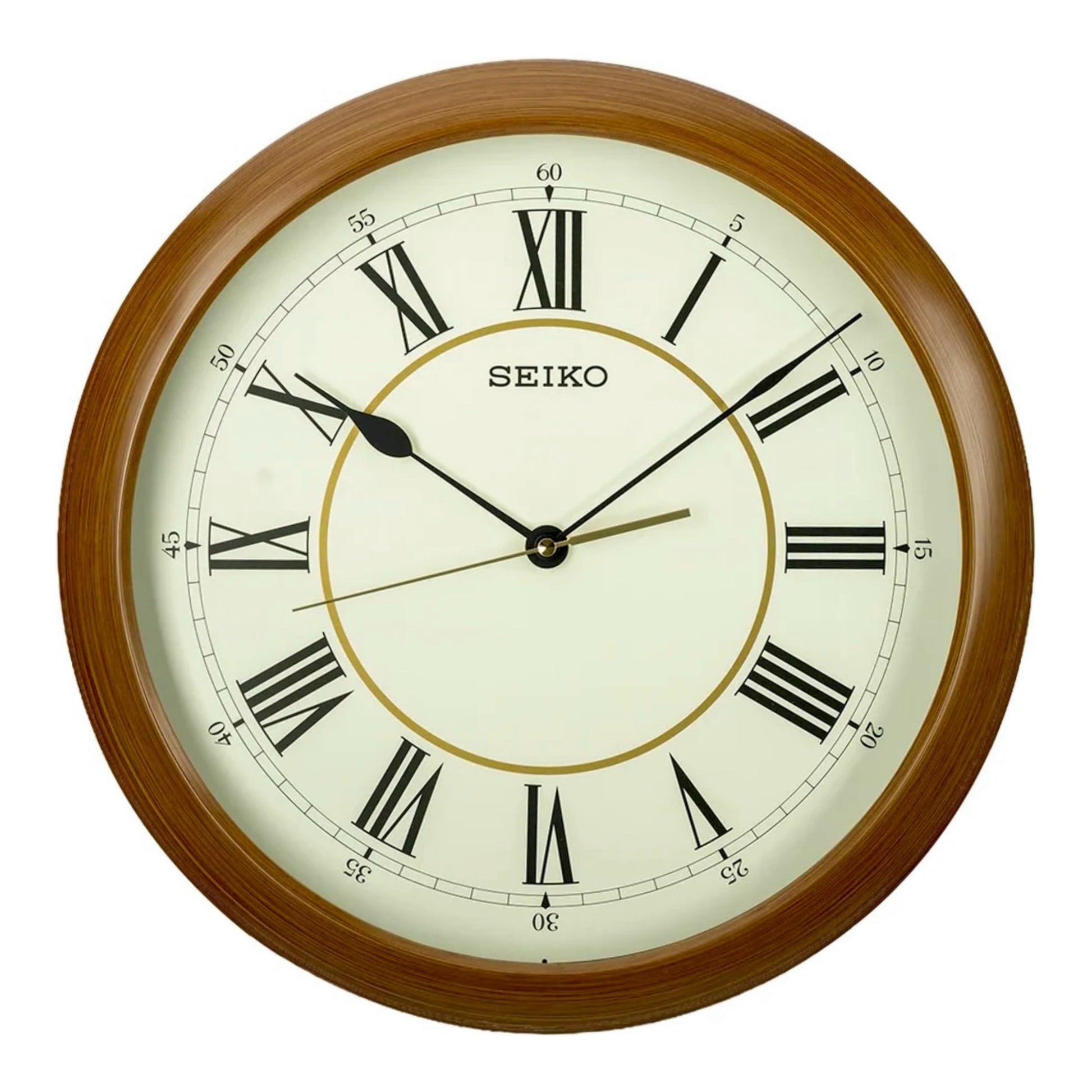 Seiko QXA598ALH "16-Inch Woodgrain with Roman Numerals" Large Wall Clock with Silent Sweep Second Hand