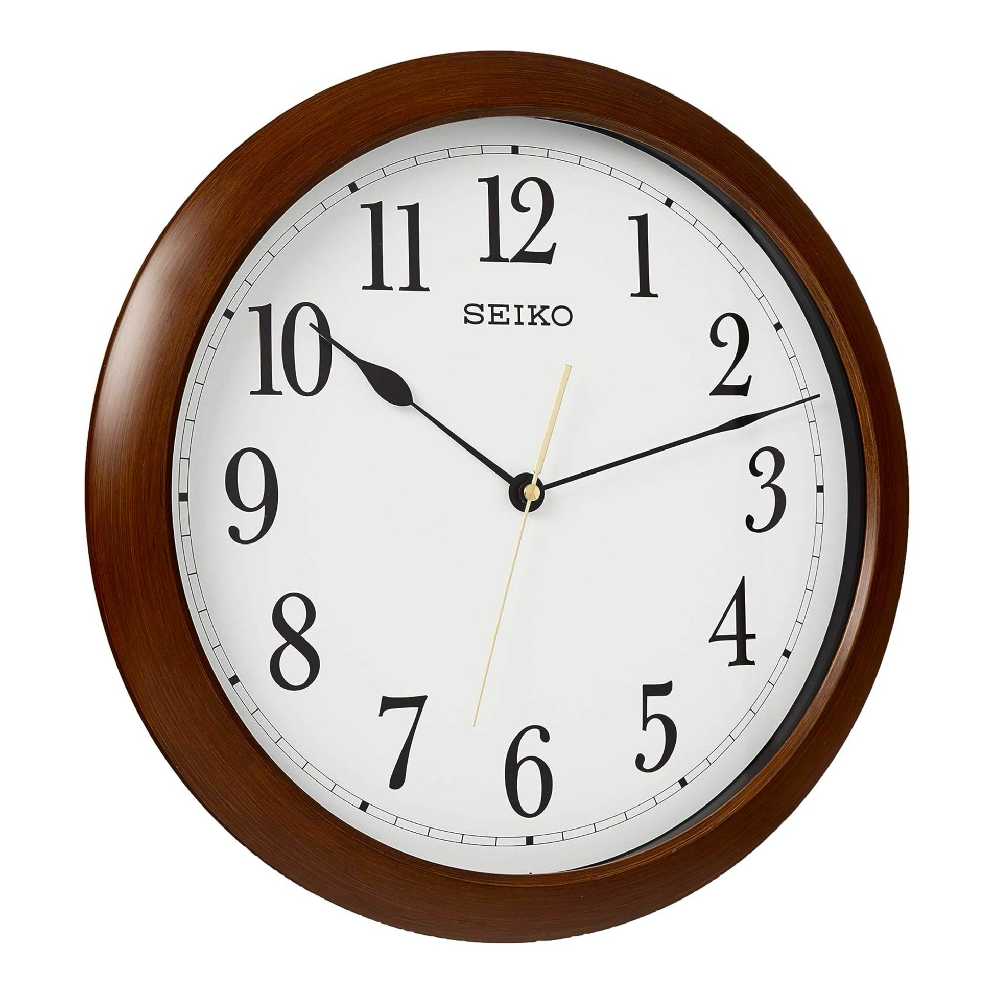 Seiko QXA598BLH "16-Inch Woodgrain" Large Wall Clock with Silent Sweep Second Hand