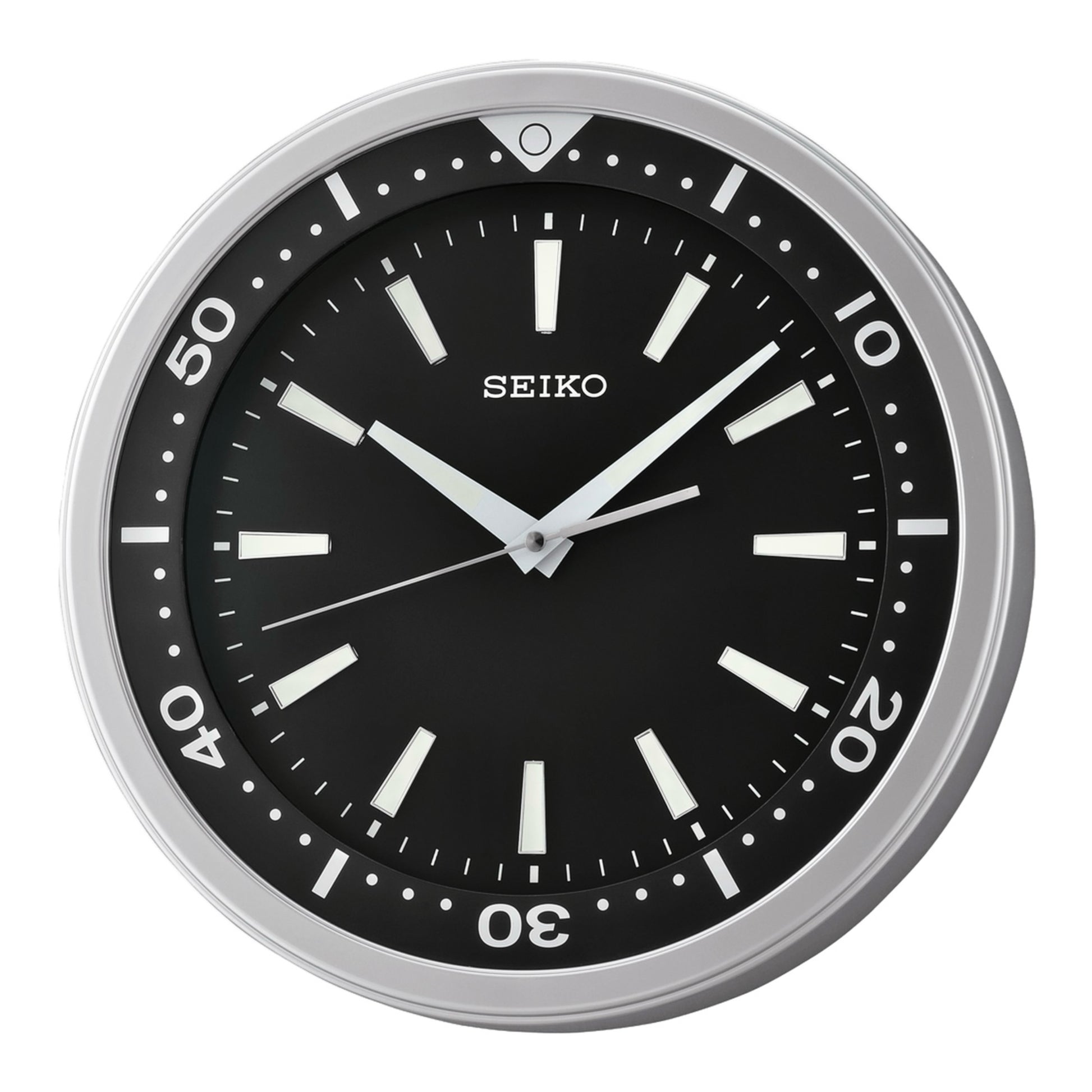 Seiko QXA723ALH "Black Classic Watch Dial" Luminous Wall Clock with Silent Sweep Second Hand