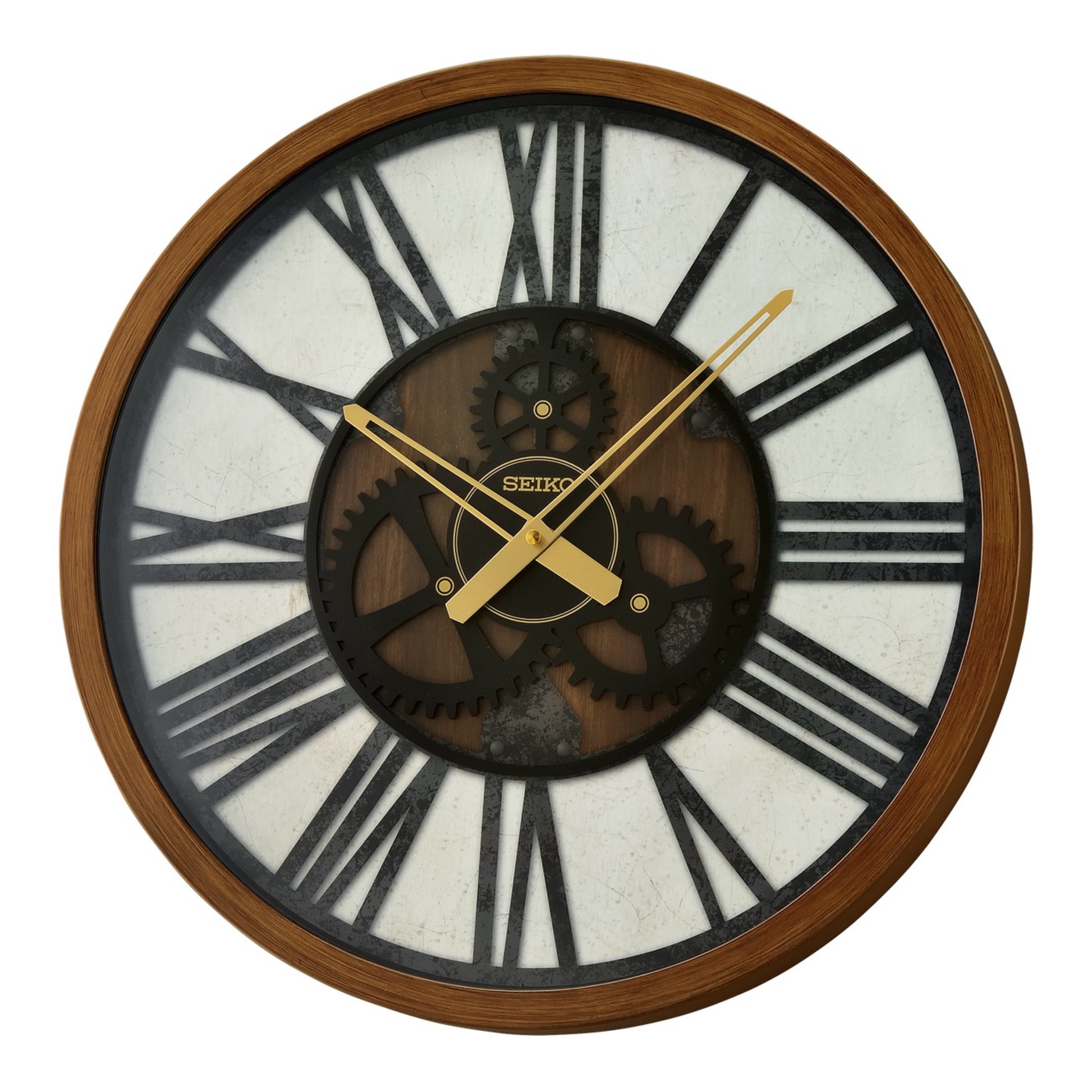 Seiko QXA826BLH "Brown Jessie" Large Gallery Wall Clock with Raised Steampunk Gears & Numerals