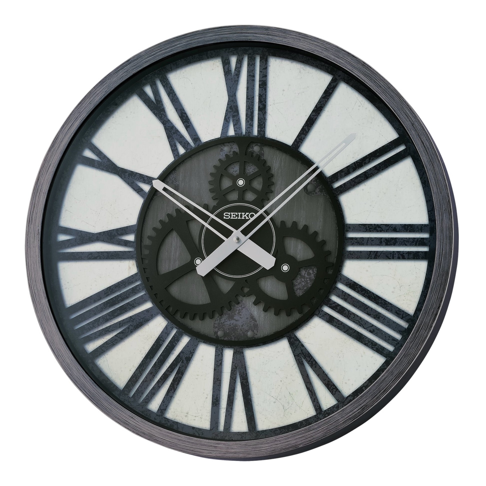Seiko QXA826KLH "Gray Jessie" Large Gallery Wall Clock with Raised Steampunk Gears & Numerals