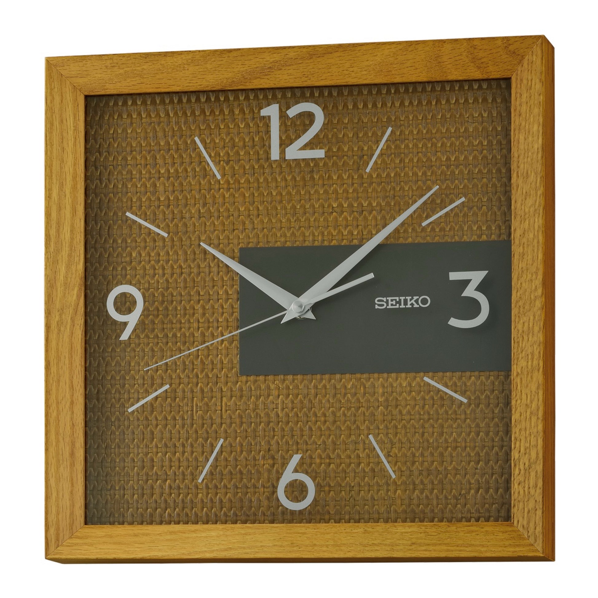 Seiko QXA845BLH "Brown Palm Springs" Decorative Wooden Wall Clock with Rattan Dial