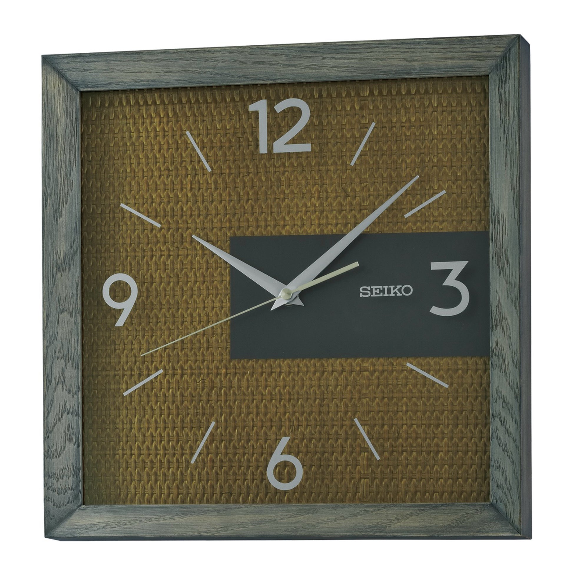 Seiko QXA845NLH "Gray Palm Springs" Decorative Wooden Wall Clock with Rattan Dial