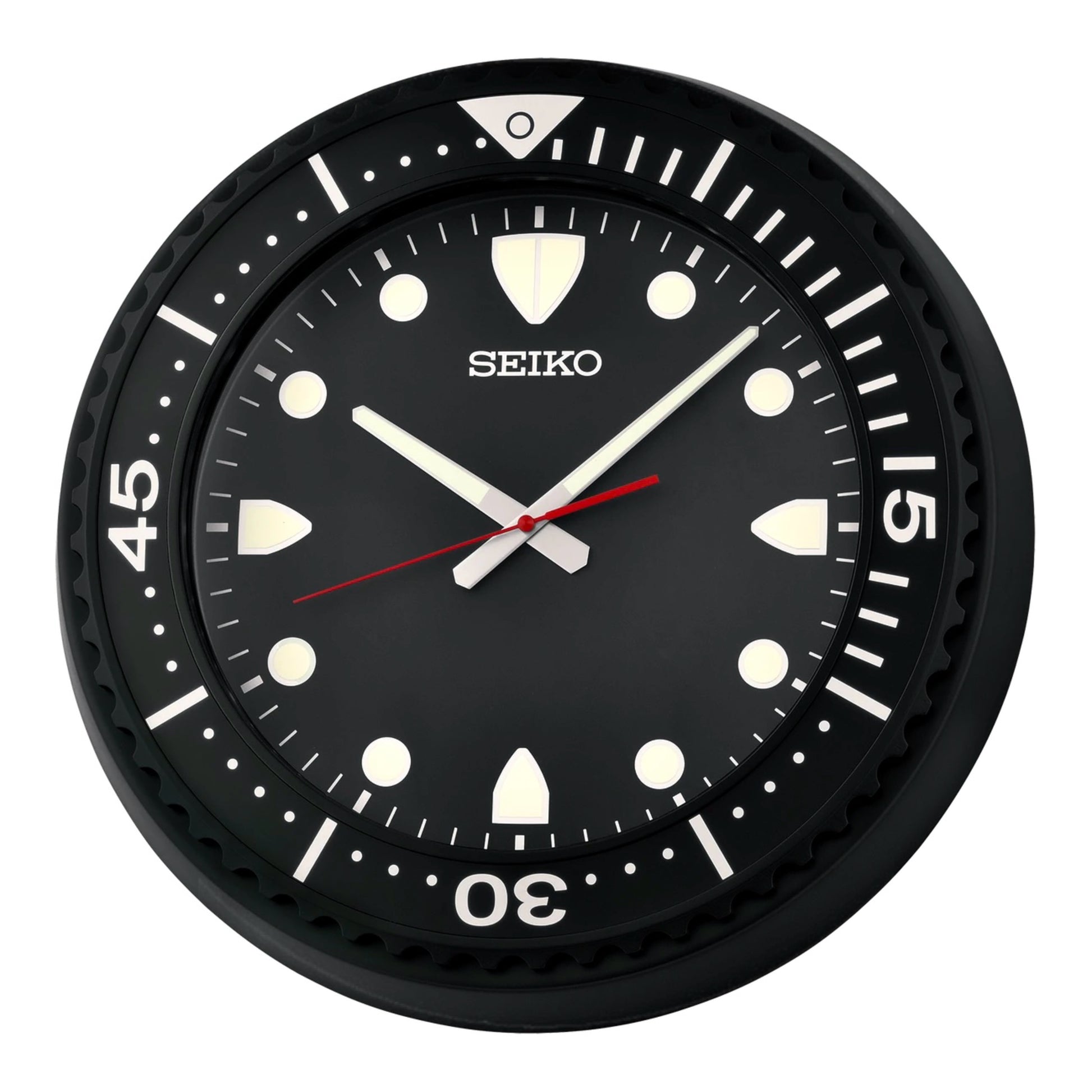 Seiko QXA849KLH "Big Time Watch Dial" Black Heritage Design Large Luminous Metal Wall Clock with Silent Sweep Second Hand