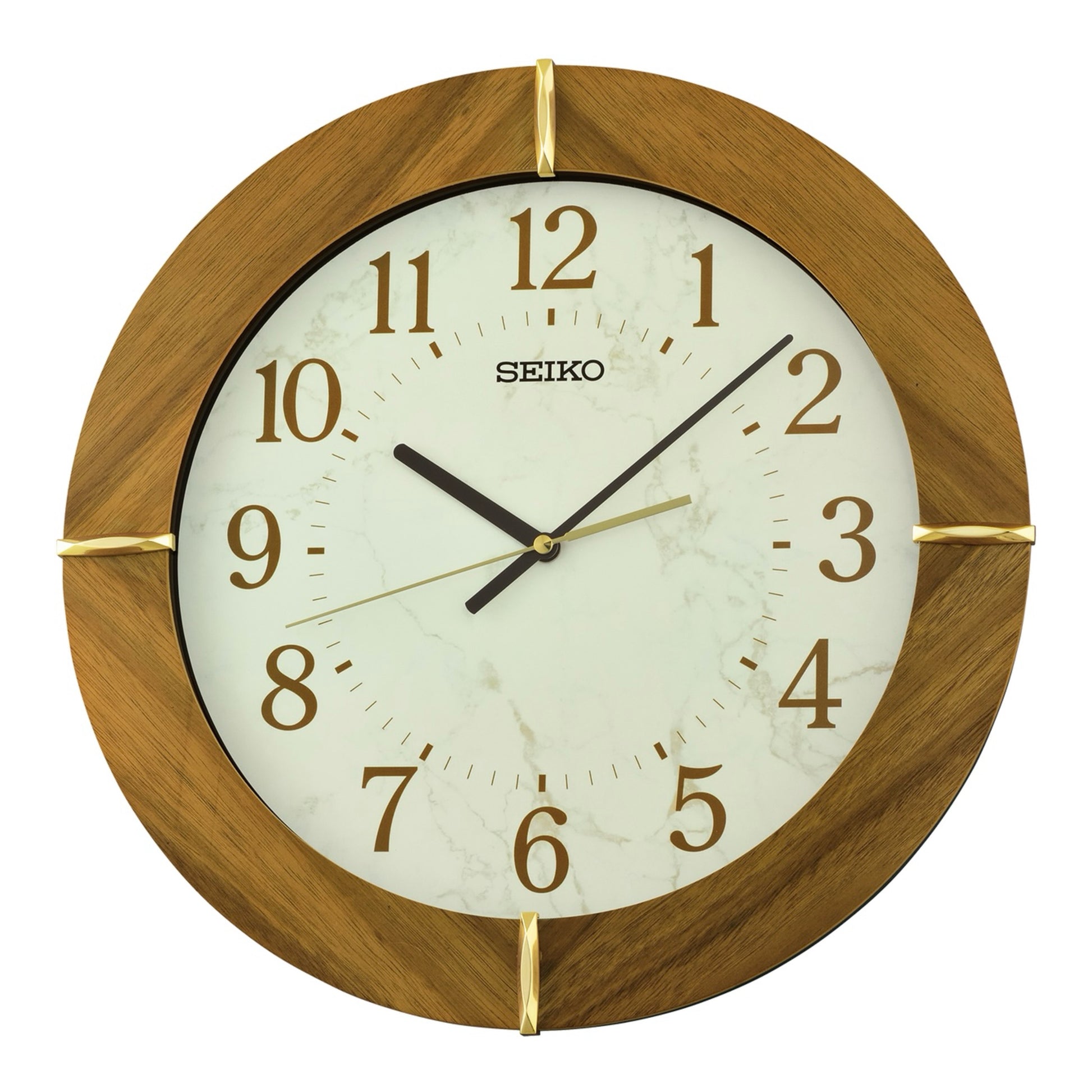 Seiko QXA855BLH "Sundial" Large Decorative Wooden Wall Clock with Silent Sweep Second Hand