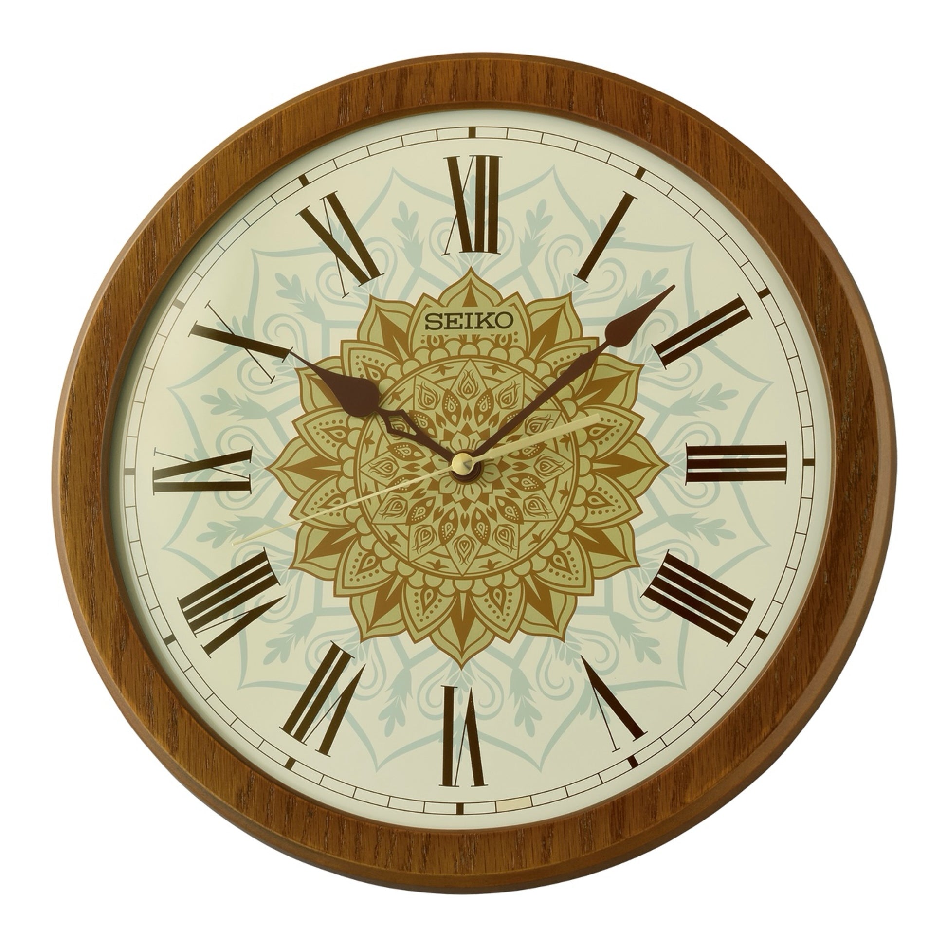 Seiko QXA857ZLH "Brown Mehndi" Decorative Wooden Wall Clock with Silent Sweep Second Hand