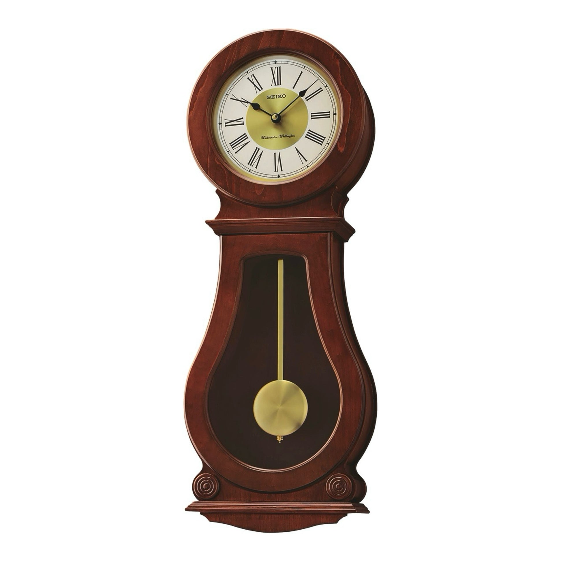Seiko QXH071BLH "Circular & Classic" Traditional Curved Wooden Chiming Pendulum Wall Clock