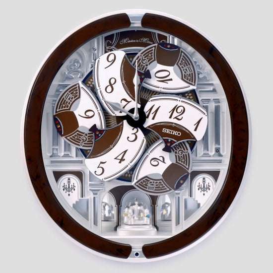Seiko's "Dancing Dial" Melodies in Motion clocks are both enchanting and magical. They are some of the most popular and best-selling musical clocks, and for good reason. At the top of each hour, the dials twist and turn to dance along in sync with the soothing melodies to create both a hypnotizing and joyful display.