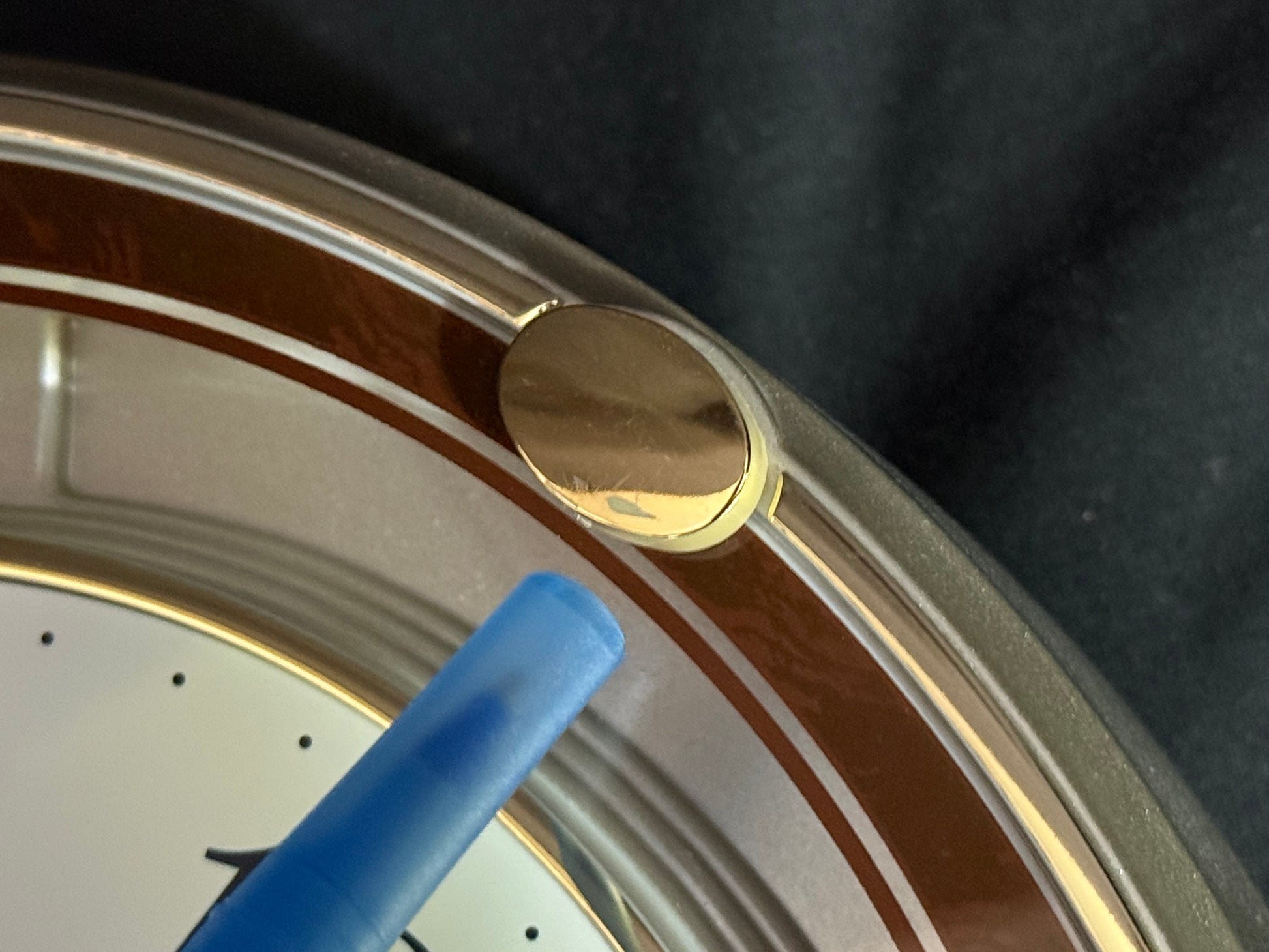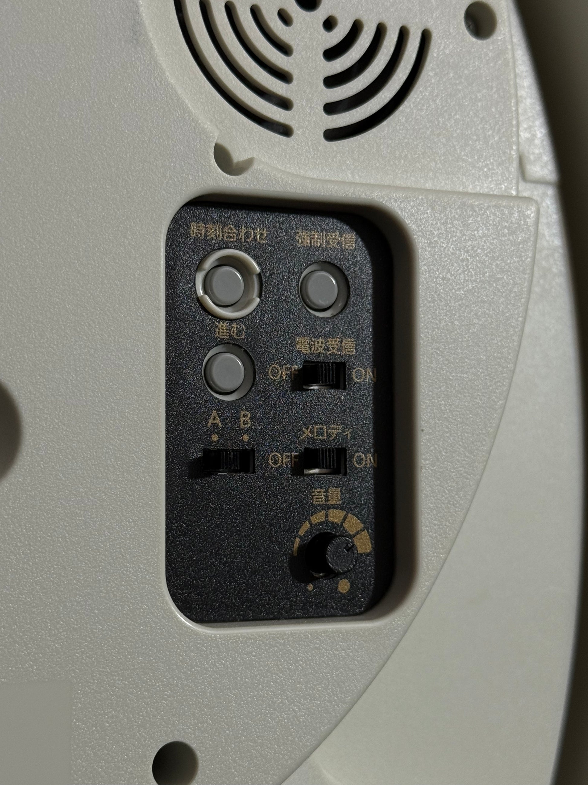 Since this clock was produced for the Japanese market, it has a radio-controlled movement and only works on Japan’s radio waves. So, the time will need to be set manually by pressing and holding the buttons on the back. Click here for a video tutorial.