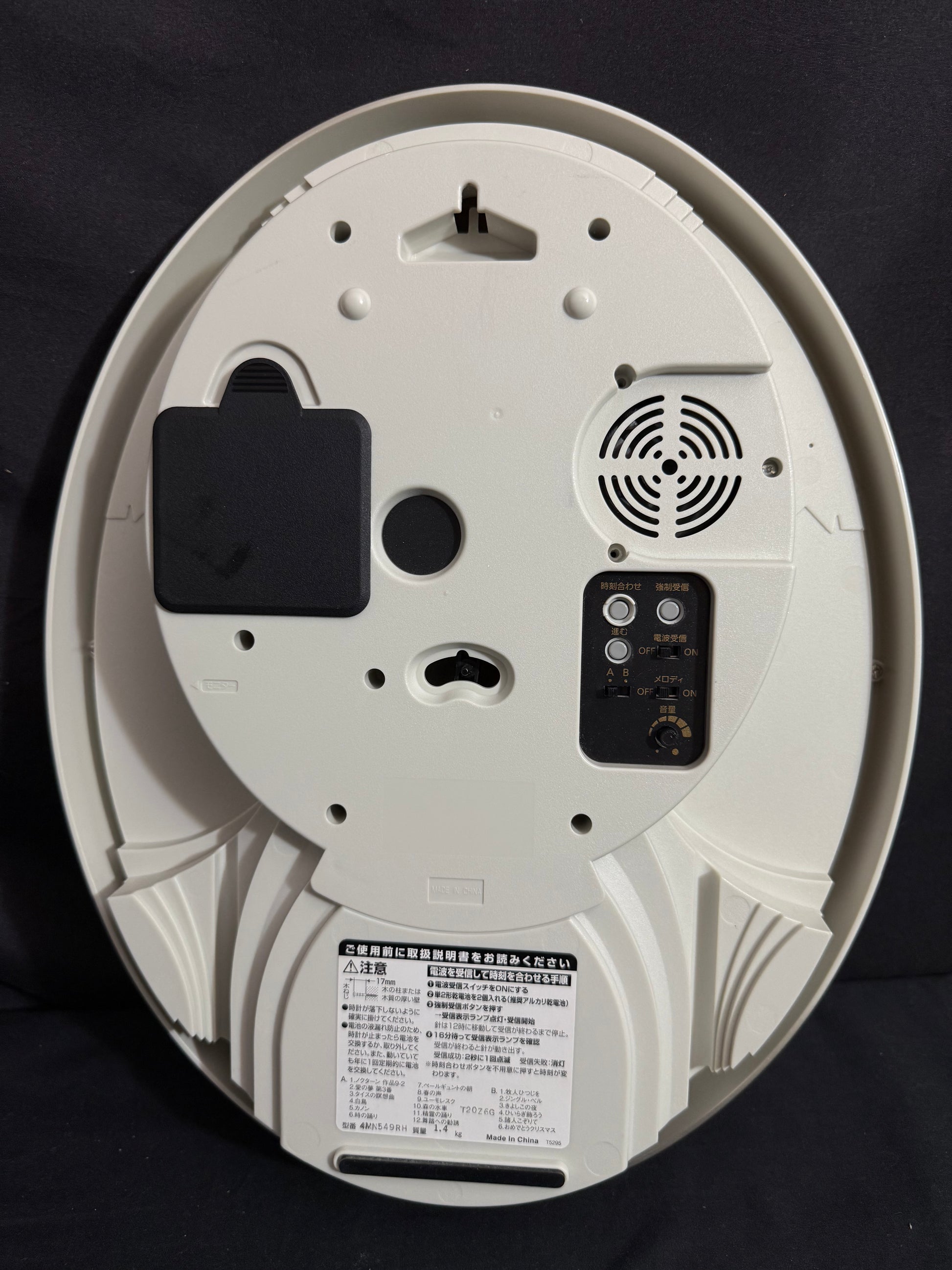 - On/off switch to turn hourly music on or off
