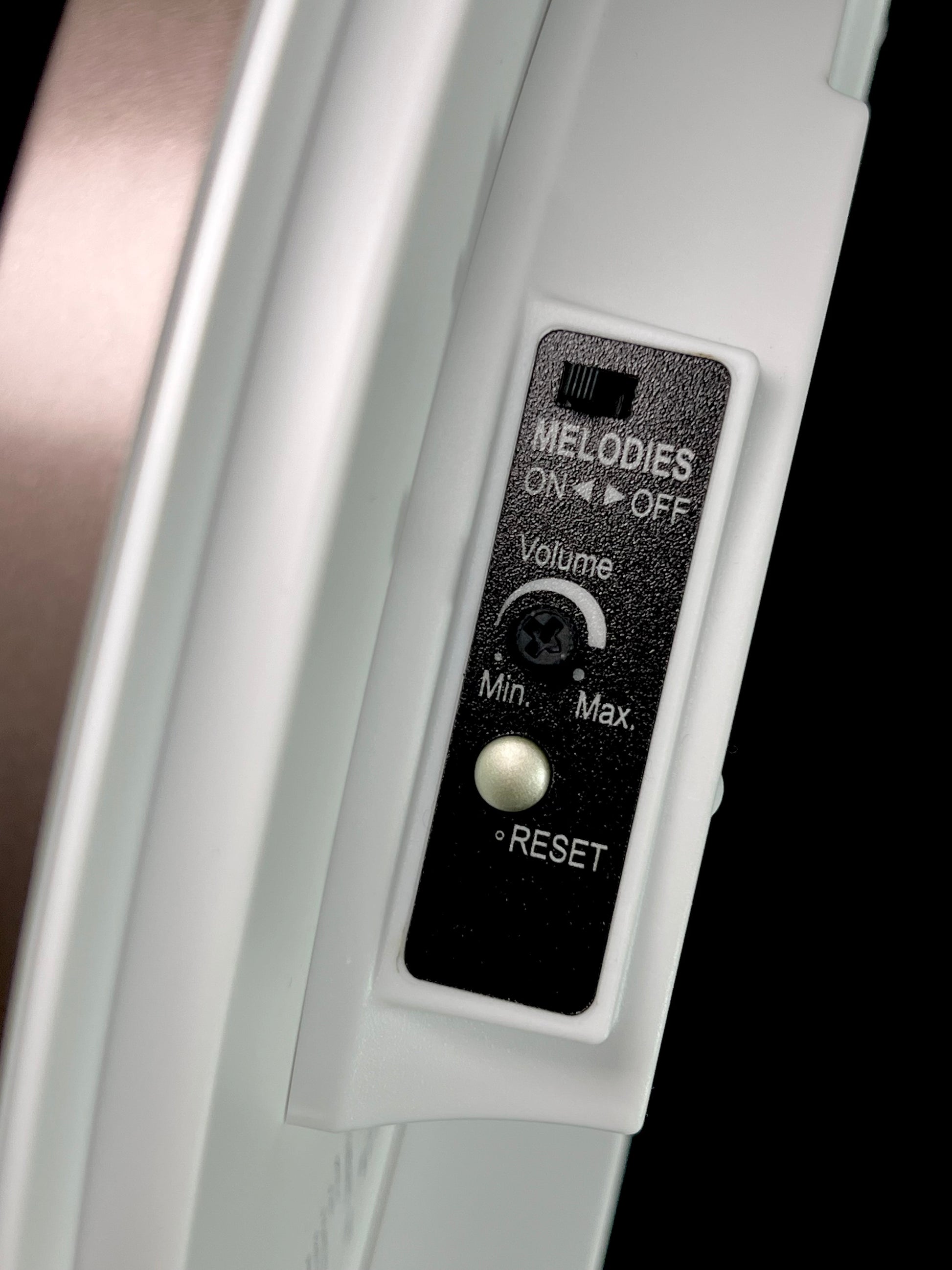 - On/off switch to turn hourly music on or off