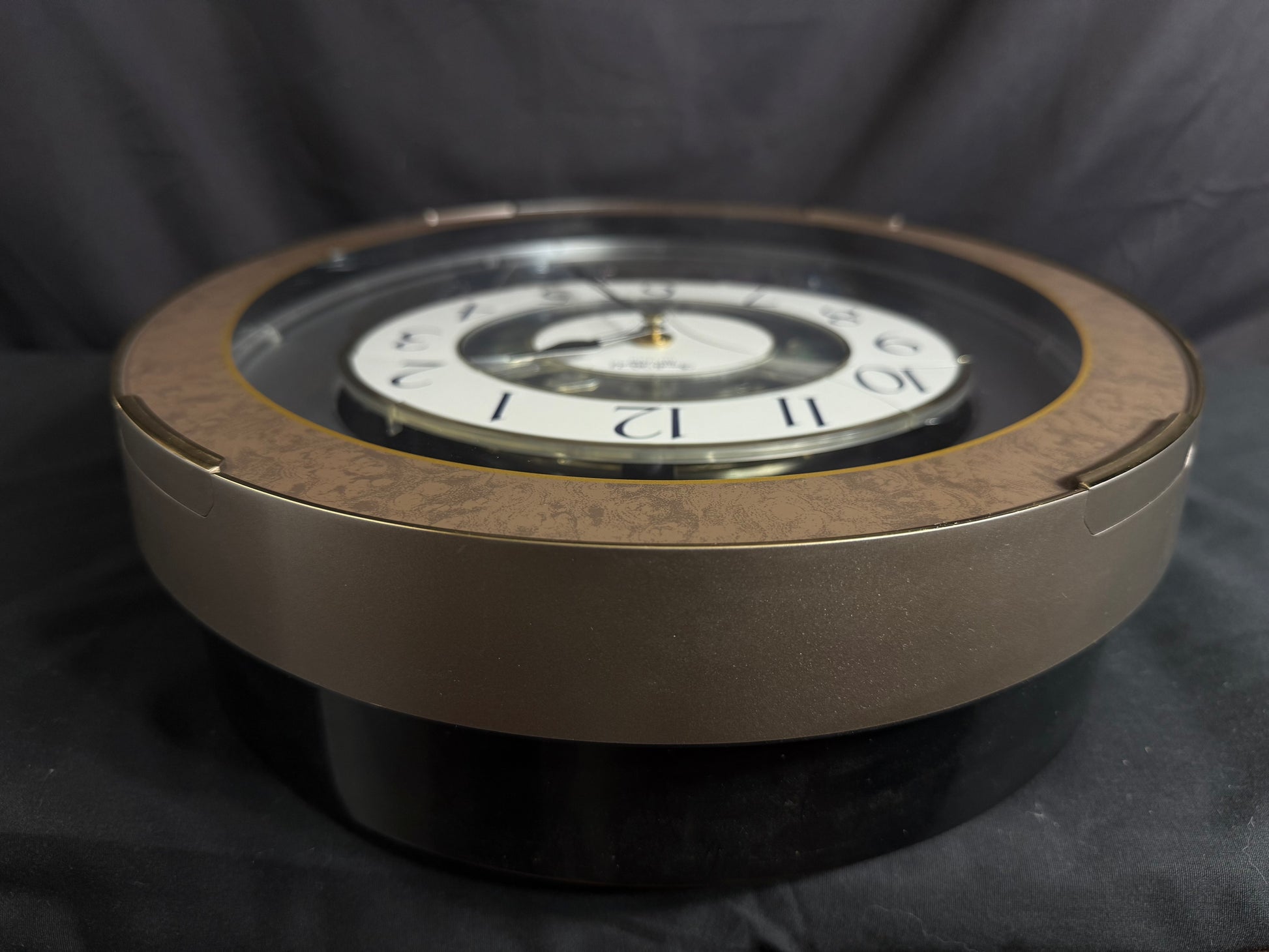 Notes: “Tri-Cracker” is one of my personal favorites because of its music and silver city theme. This one in particular is in great used condition with just a few minor scratches on the outer gold bezel. Otherwise, the clock works perfectly and sounds amazing! Please view all of the photos and watch the video for a closer look.
