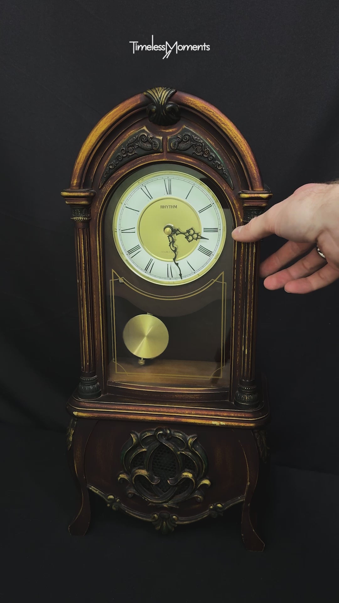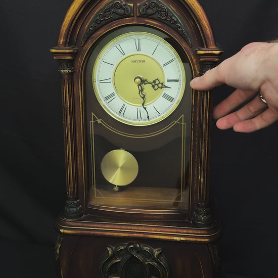 Rhythm "CTS Venetian" Antique-Style Wooden Musical Pendulum Mantel Clock with Intricate Carved Frame - CRJ715UR06